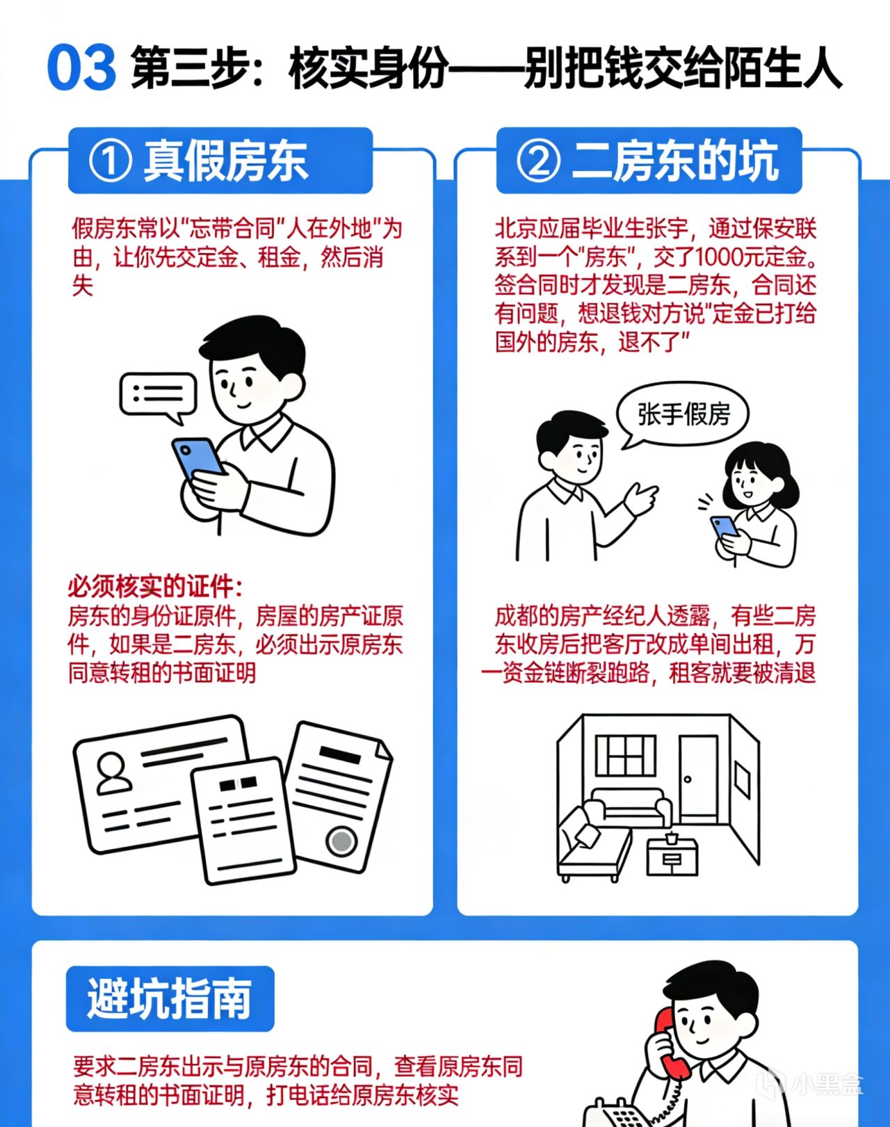 ① 真假房东 假房东常以“忘带合同”“人在外地”为由,让你先交定金、租金,然后消失。