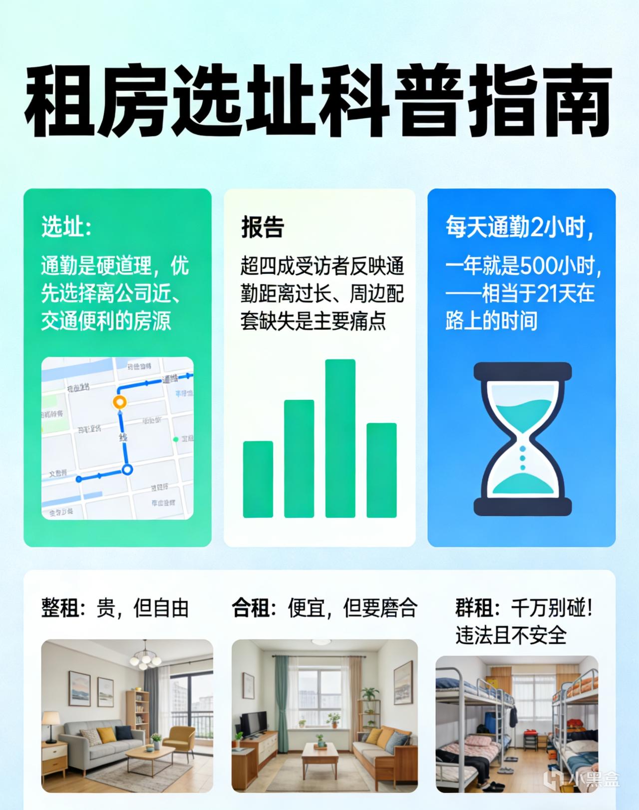② 选址:通勤是硬道理 优先选择离公司近、交通便利的房源。