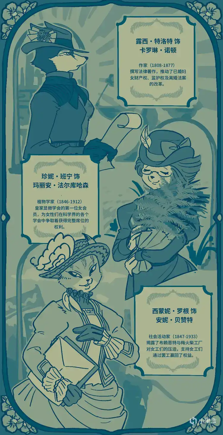 依據劇情中的對應關係,我們讓遊戲中的女性角色扮演了三位19世紀的知名女性: 露西·特洛特 飾 卡羅琳·諾頓 作家(1808-1877) 撰寫法律著作,推動了已婚婦女財產權、監護權及離婚法案的改革。