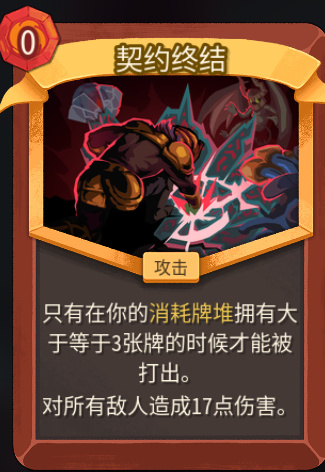 通过消耗精简卡组,直到卡组只剩下极少量的卡牌,然后一回合打出多次契约终结终结比赛。