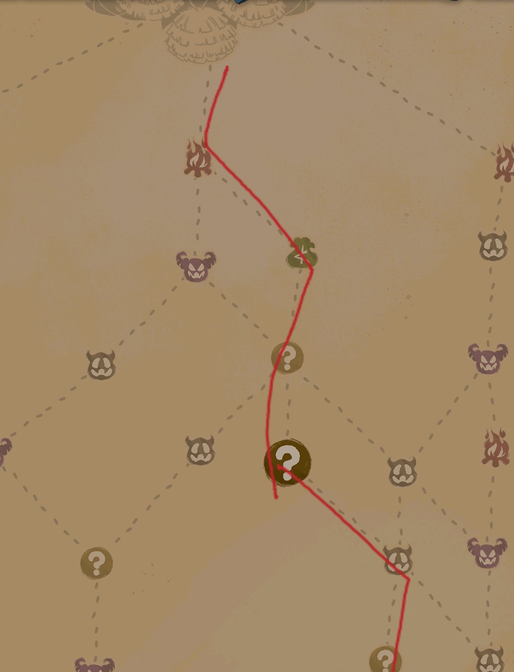 在本作中,鼠标右键可以在地图上绘画,建议开局就规划好路线,没把握不要连战精英,不要走没有火堆的绝路,不要几百块不去商店然后当棺材本,你玩自残战了,一定要选好路线,算好战损。