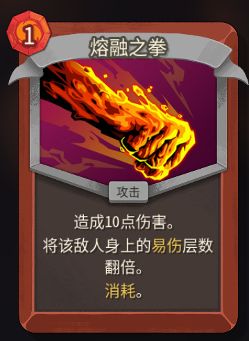 特别的,有几张无色卡可以进构筑,去掉消耗的事件如果能给到熔融之拳,就立刻转变思路,去在对局中多次触发熔融之拳。