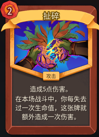 这句话很明显有两个要素,第一点,你需要频繁的失去生命去触发【扯碎】,第二点,每次额外伤害都能独立吃到力量加成,你可以叠加力量确保伤害最大化。