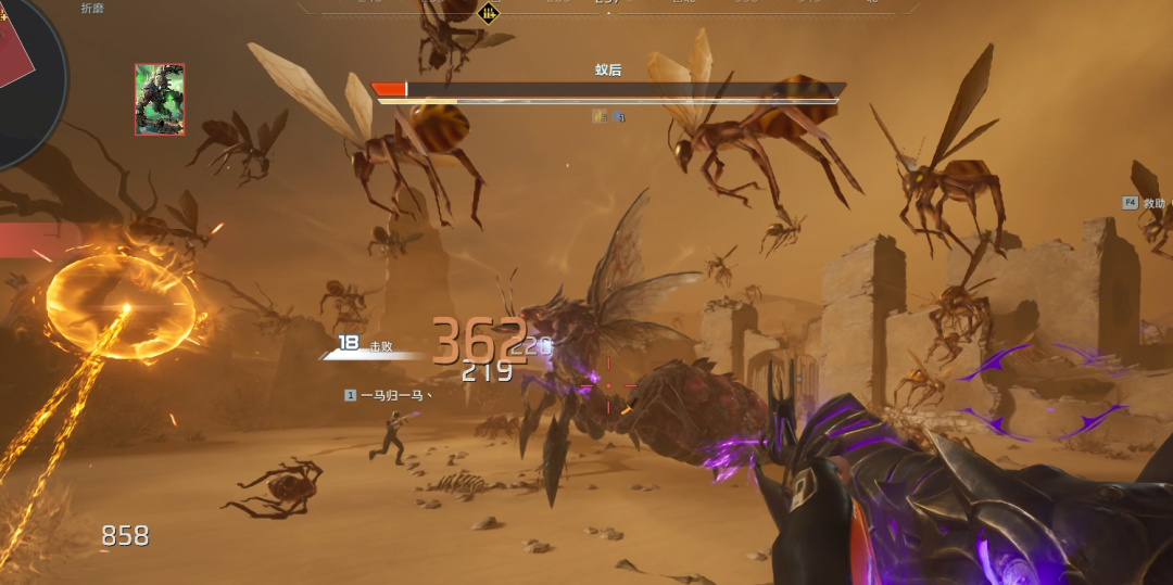 蚁后召唤一堆虫子围绕自身回血,你用不着打虫子(没有判定),赶紧秒了蚁后即可,兽神两发榴弹的事。