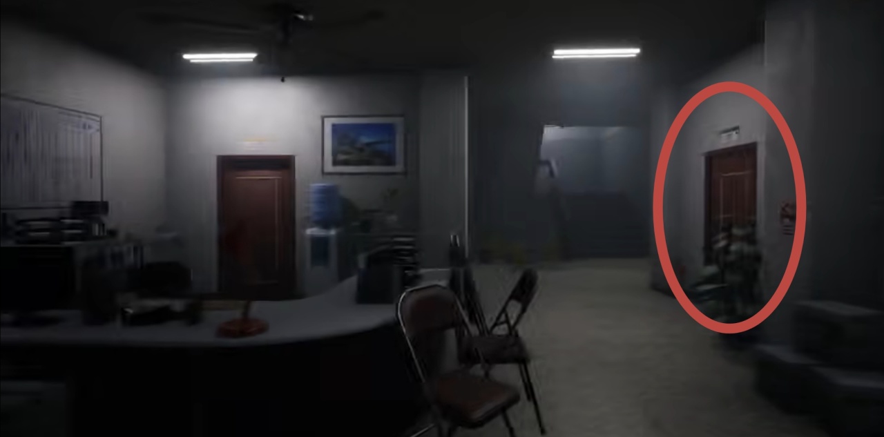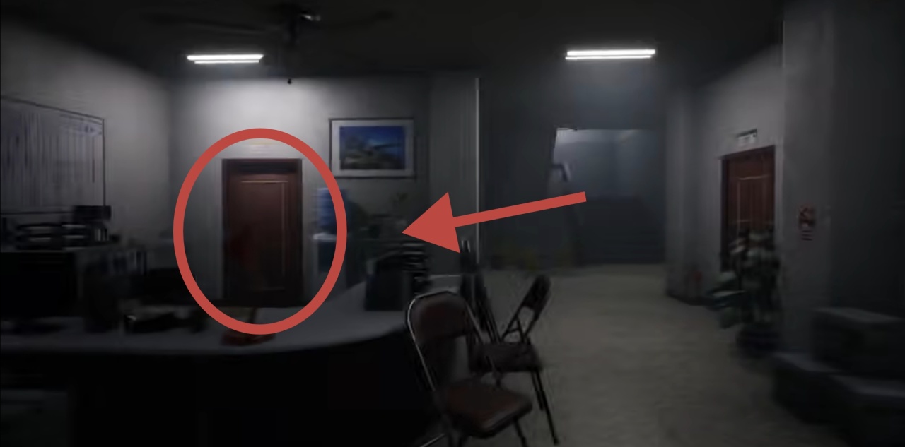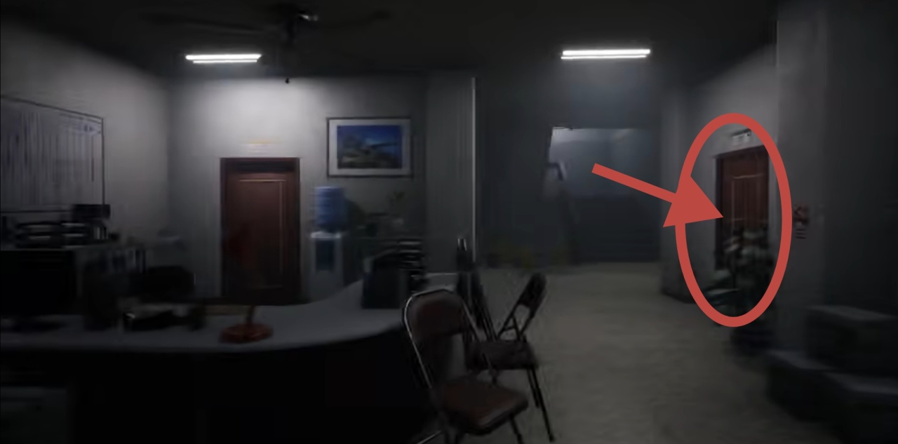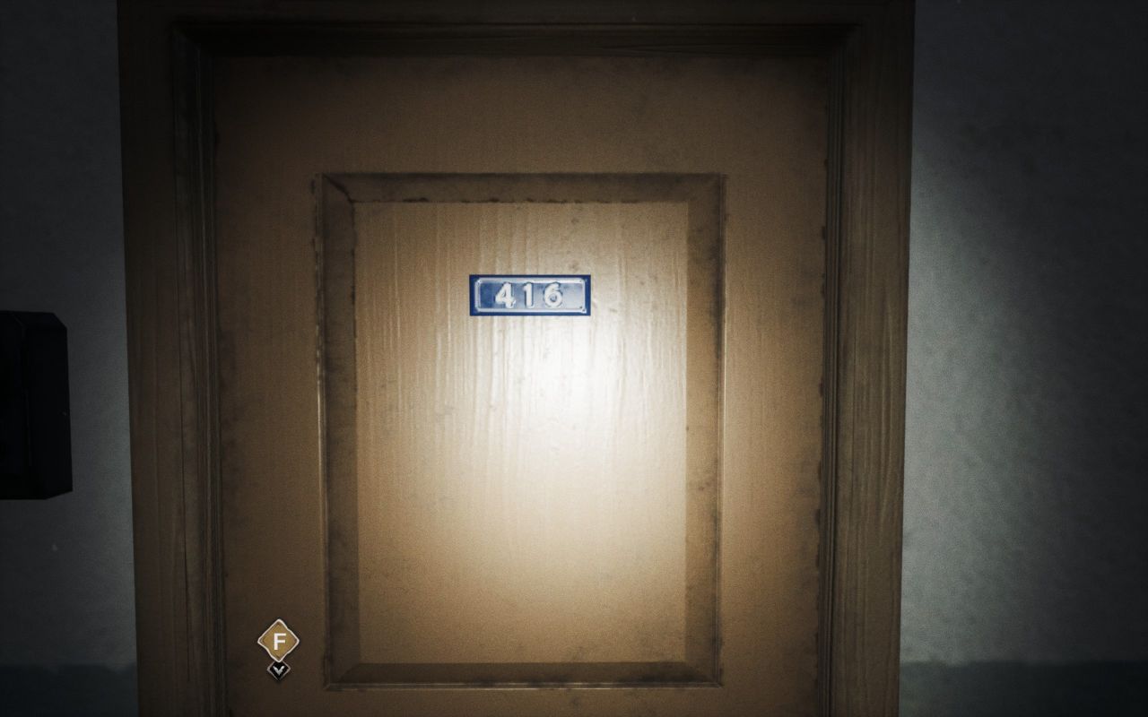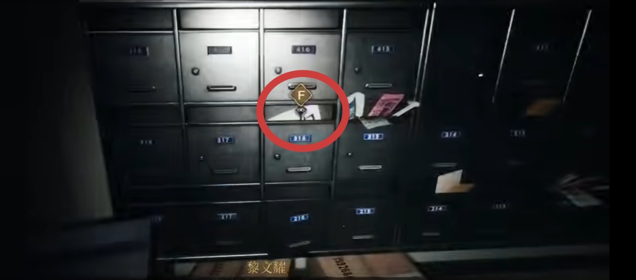 随后找到发出声音的房间,互动之后触发固定剧情,随后到1楼如图房间找到密码盘,再回到216房间