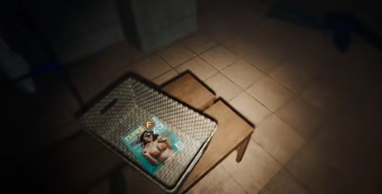 随后在216房间与床头柜互动,拿到用品——破碎的块状物:女人