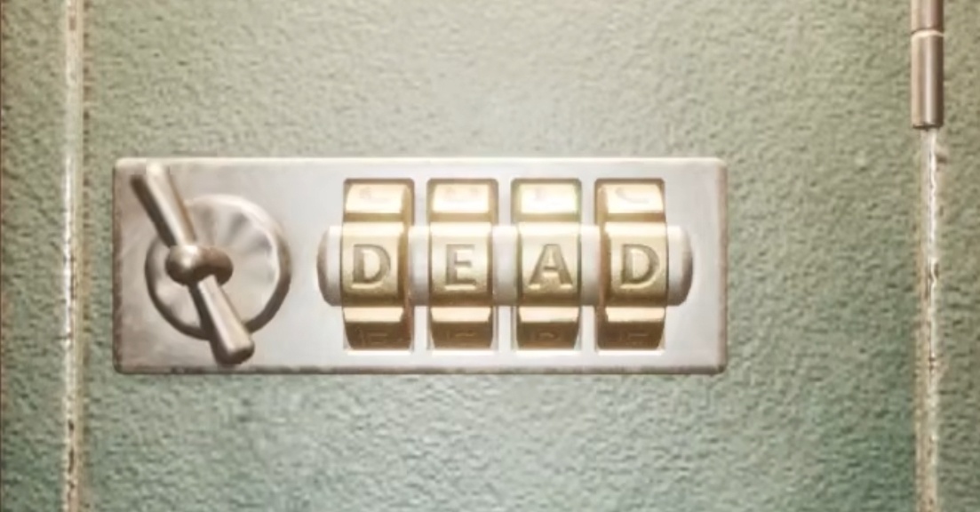 书的位置放对后,中间则会打开,有一个保险柜,需要输入密码,密码则是DEAD