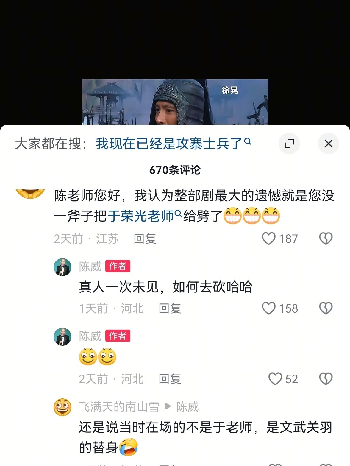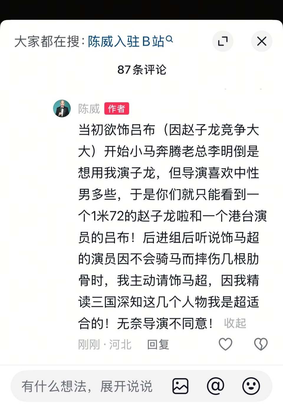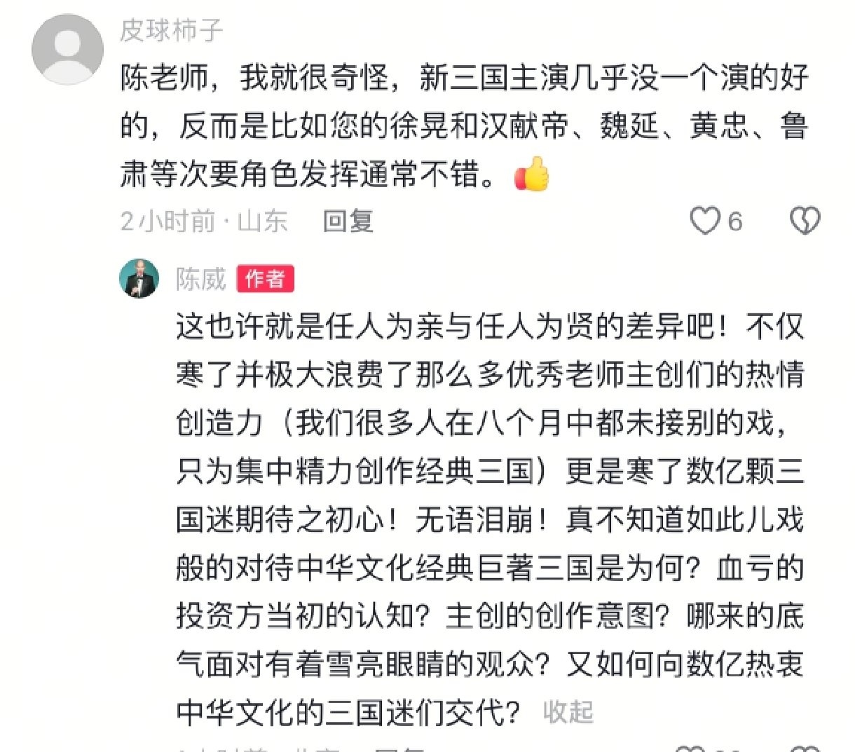 陈威还直言:这部剧的编剧、导演根本不懂三国,剧情、台词全是硬伤,一点不尊重原著。