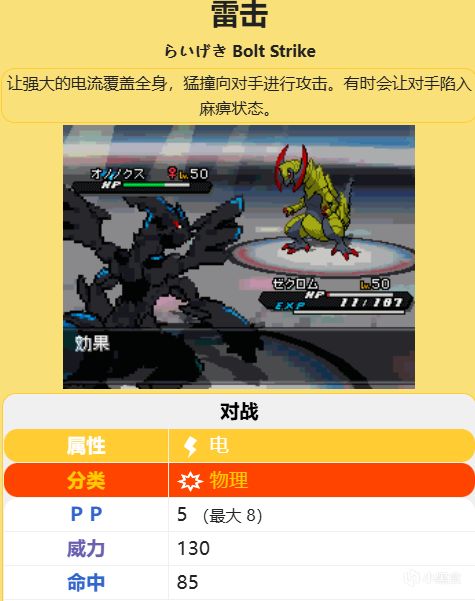 跟青焰一样,这也是个命中率不满的单体技能,有20%让对面麻痹,哎,希望第黑白复刻给你改成群攻吧(甚至电击也有10%概率让对面麻痹)