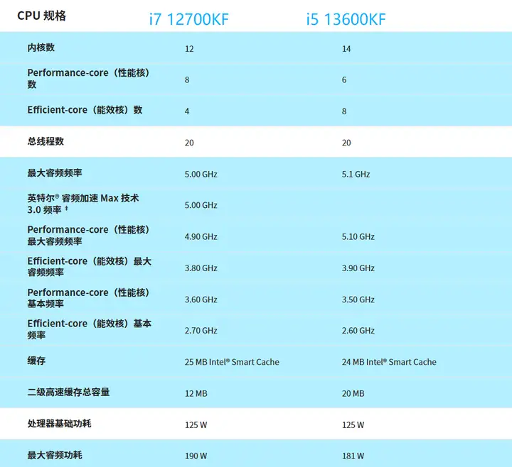此外有人问为啥不推荐12700KF,因为价格贵大几百、性能规格还和13600KF拉不开差距,故不推荐