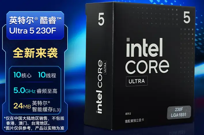 U5 225F/230F 10核心10线程(约767元,建议搭配H810、B860主板):