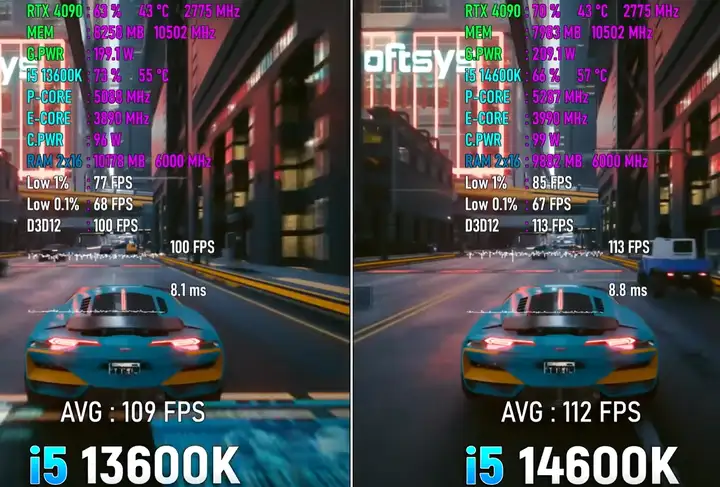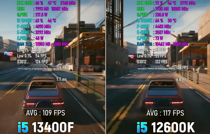 其中,12600KF的频率相对较高。像CS2、PUBG、瓦洛兰特等网游中,12600KF能获得更强的帧数表现(3A单机游戏里则差距不大):