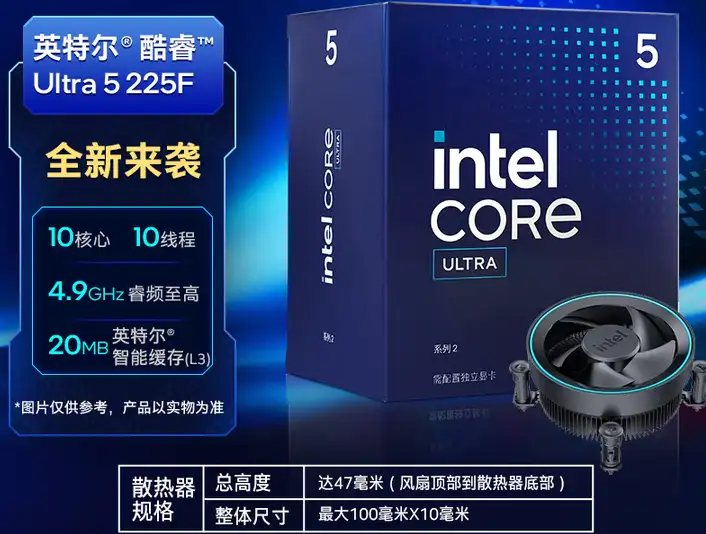 需注意,U5 230F虽是盒装,但没有散热器需自备。而U5 225F是有自带散热器的: