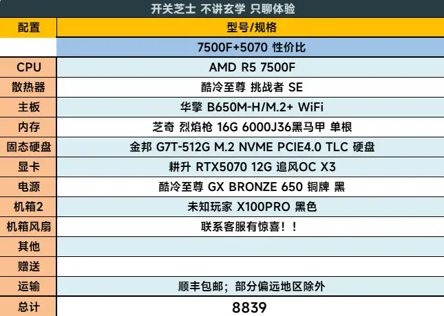 7500F可搭配主流中高端显卡,新平台未来升级新CPU也方便