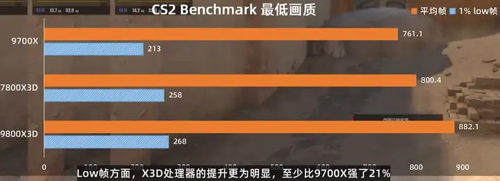 9800X3D可看作是在9700X基础上,加入大缓存,大幅提升网游性能,是3000元价位、游戏性能的领头羊: