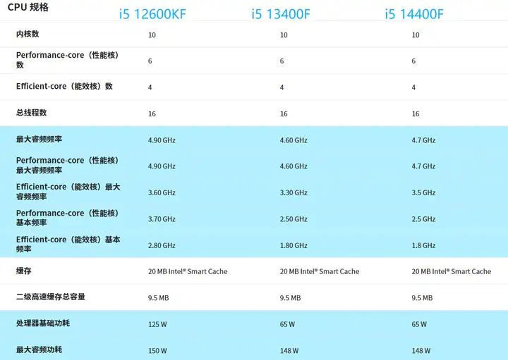 12600KF、13400F、14400F基本可以看作一胎生的大小兄弟: