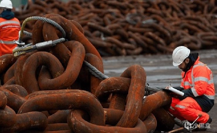 大型超大型集装箱船的锚链动辄几百米长,单个链环就重达 220 公斤。