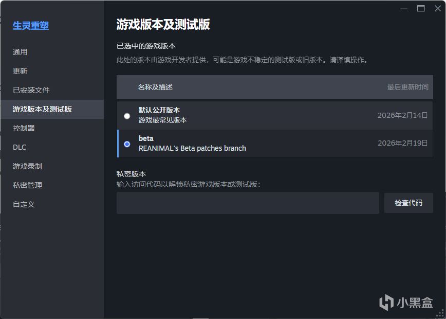 但如果你切回默认正式分支,在测试分支中新增的游戏进度将会丢失!