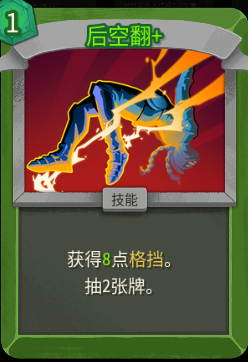 格挡卡里面小二推荐后空翻和逃脱计划,尤其是后空翻,兼具过牌和防御两项属性,而且还融合的很高,玩毒小二特别喜欢抓的一张卡。逃脱计划0费过牌,看着触发加的防御不多,但是可以吃到敏捷加成,也是不错的选择。