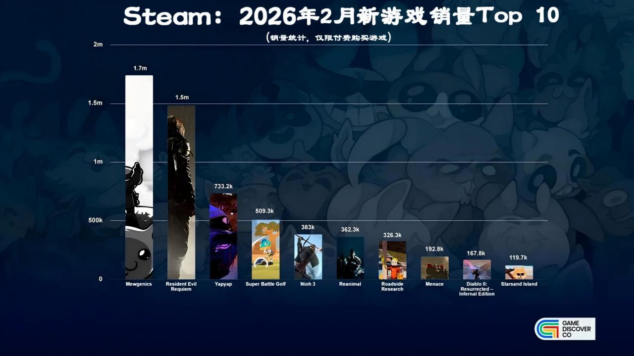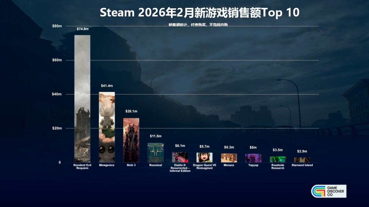 注意都仅仅统计26年2月新发售游戏,销量排名不包括免费下载游戏,销售额排名不包括内购金额。