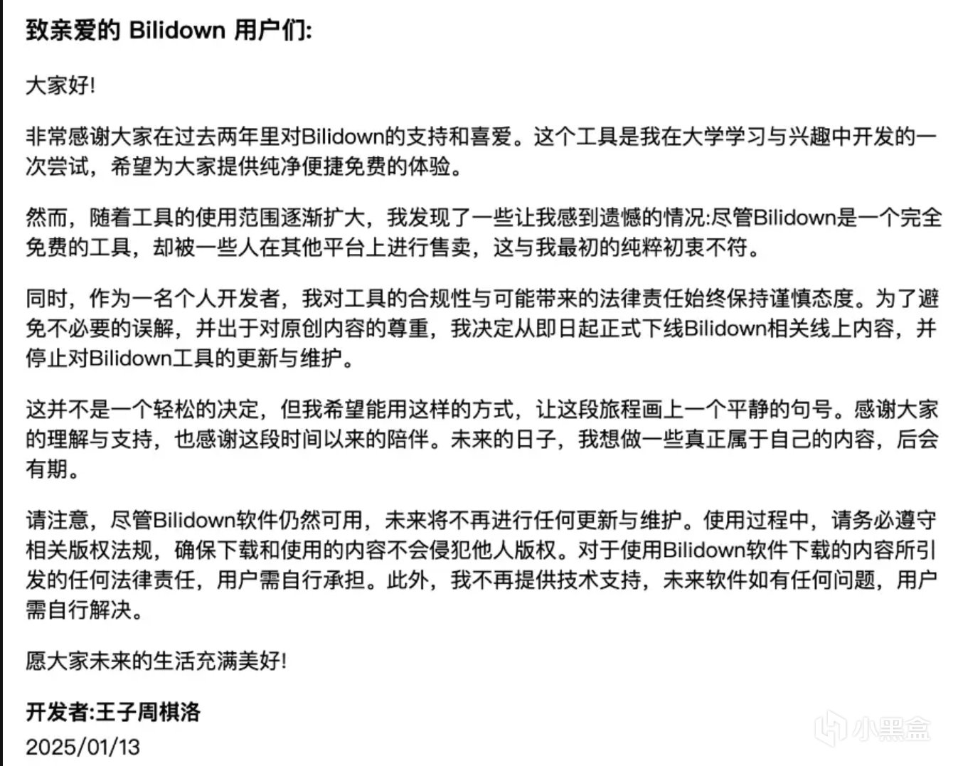 Bilidown是本人所使用的下載工具中體驗最好的一款,但由於某些原因,作者於25.1停止了後續開發及維護。