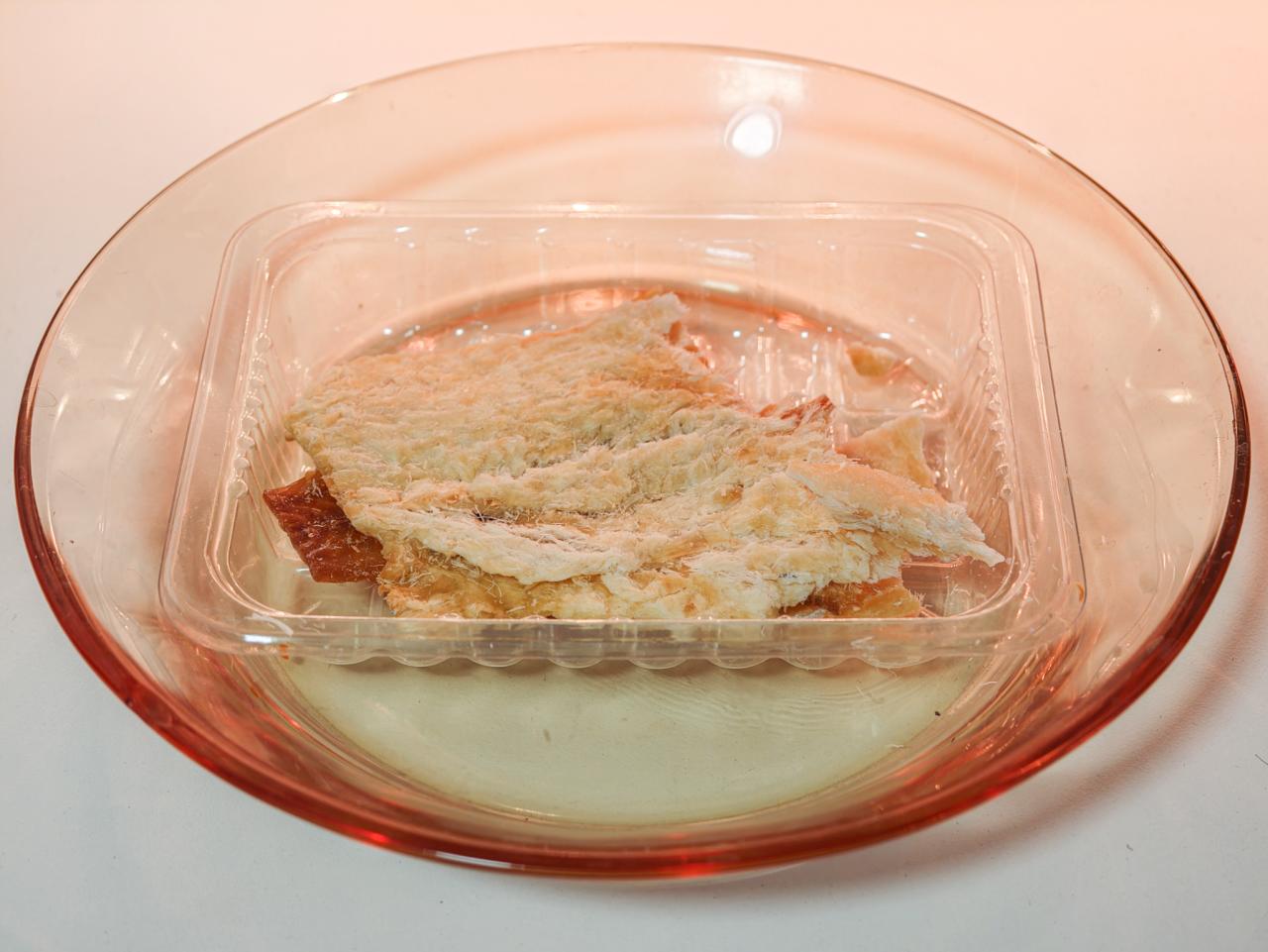 鱼肉很整齐完整,看起来也蛮新鲜的。口感很脆很奇妙,美中不足是略有点太咸了。
