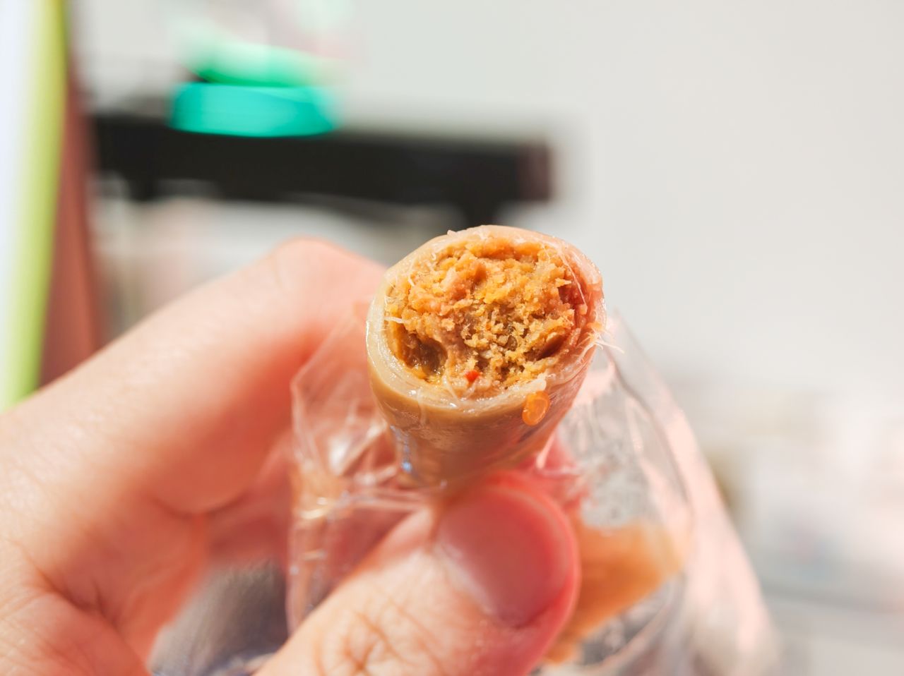 但是吃起来意外的相当不错!主打香辣咸香,口感Q弹有韧性。而且里面的籽吃起来很新鲜,好评!