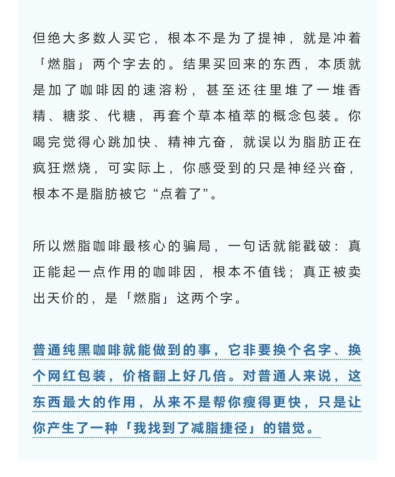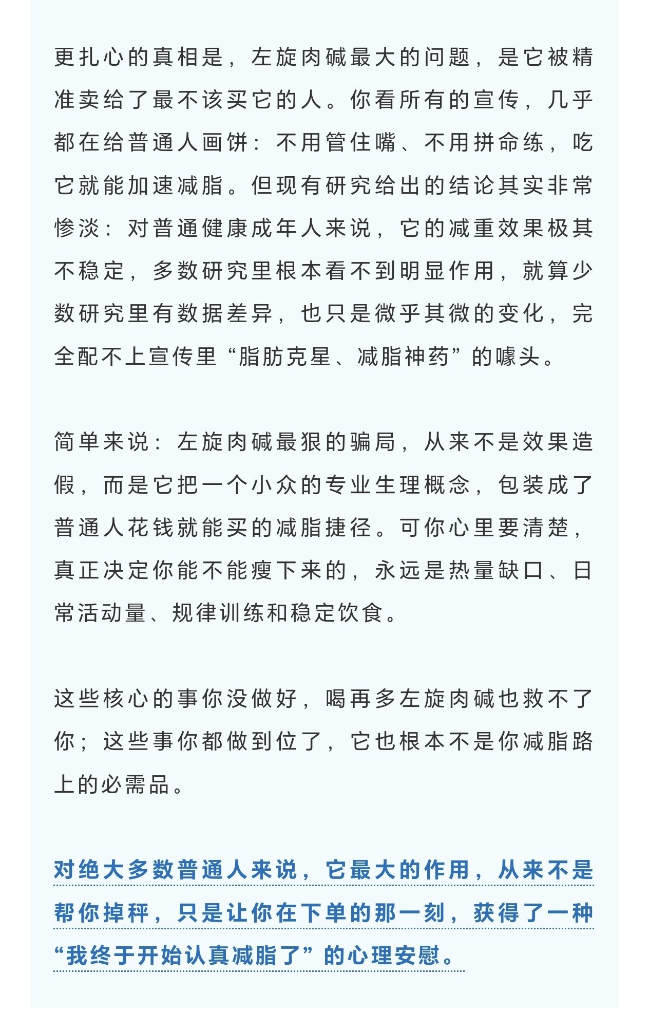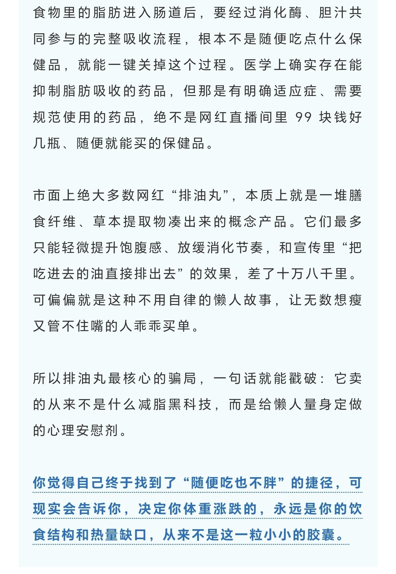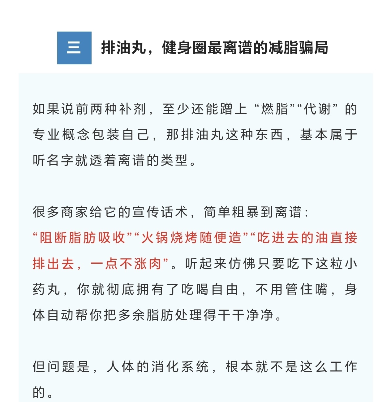 把一個聽起來很專業的生理過程,簡化成一句 “喫了就更容易瘦、更容易練”,再配上誇張的案例和鋪天蓋地的營銷話術,讓人誤以爲找到了一條不用費力的健身捷徑。