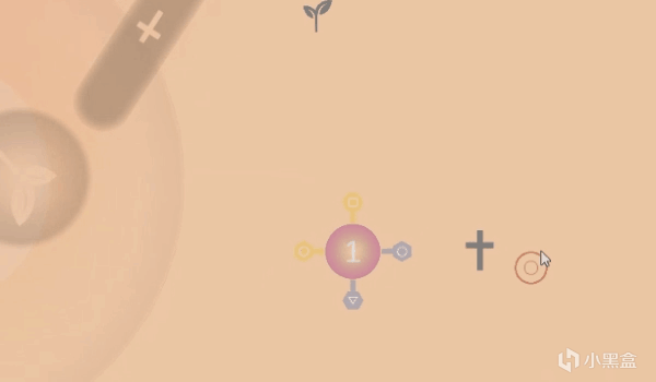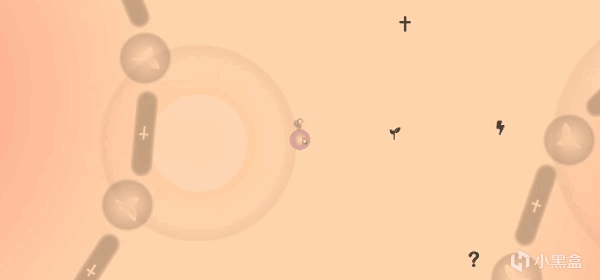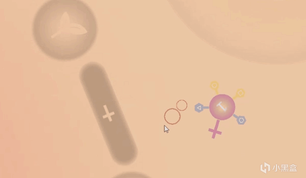 右邊白色的是細胞核心複製工廠,中央是我們的病毒單位。我們只需要讓單位接觸工廠,工廠就會開始旋轉。在工廠完成一圈旋轉之前,要確保單位停在白色的細圈內,才能順利複製噢