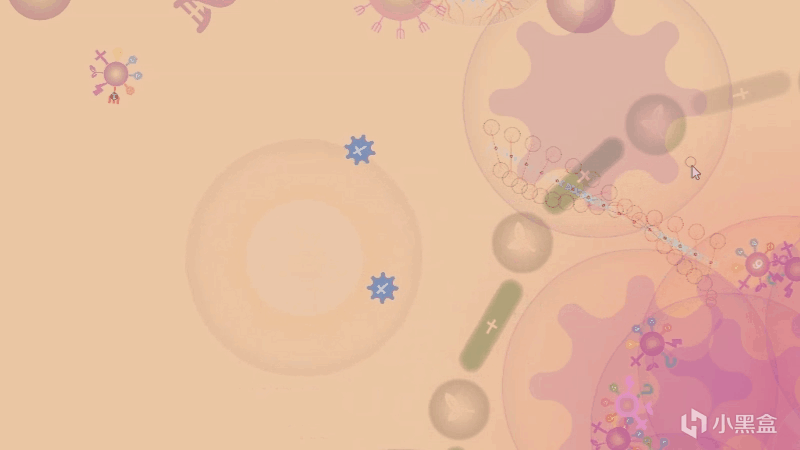 一個被病毒肆虐破壞的細胞,即將崩潰。我們指揮的就是那些紫色爲主的小圓球,它們代表病毒