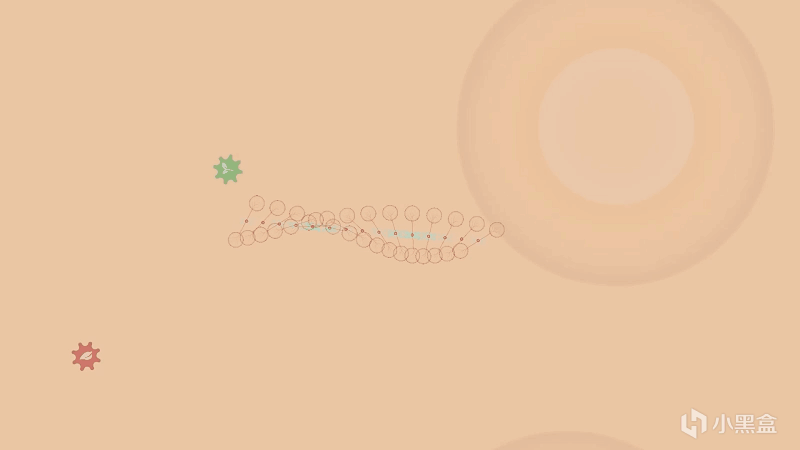 防禦網(信號遮蔽): 展開一個圈,把敵人發的報警信號全屏蔽掉。敵人會發射各種信號分子,一旦這些信號分子接觸到細胞的各個部分,就會永久改變細胞的功能,影響我們的擴散大業。這時候信號屏蔽區就像戰略防禦塔一樣重要。