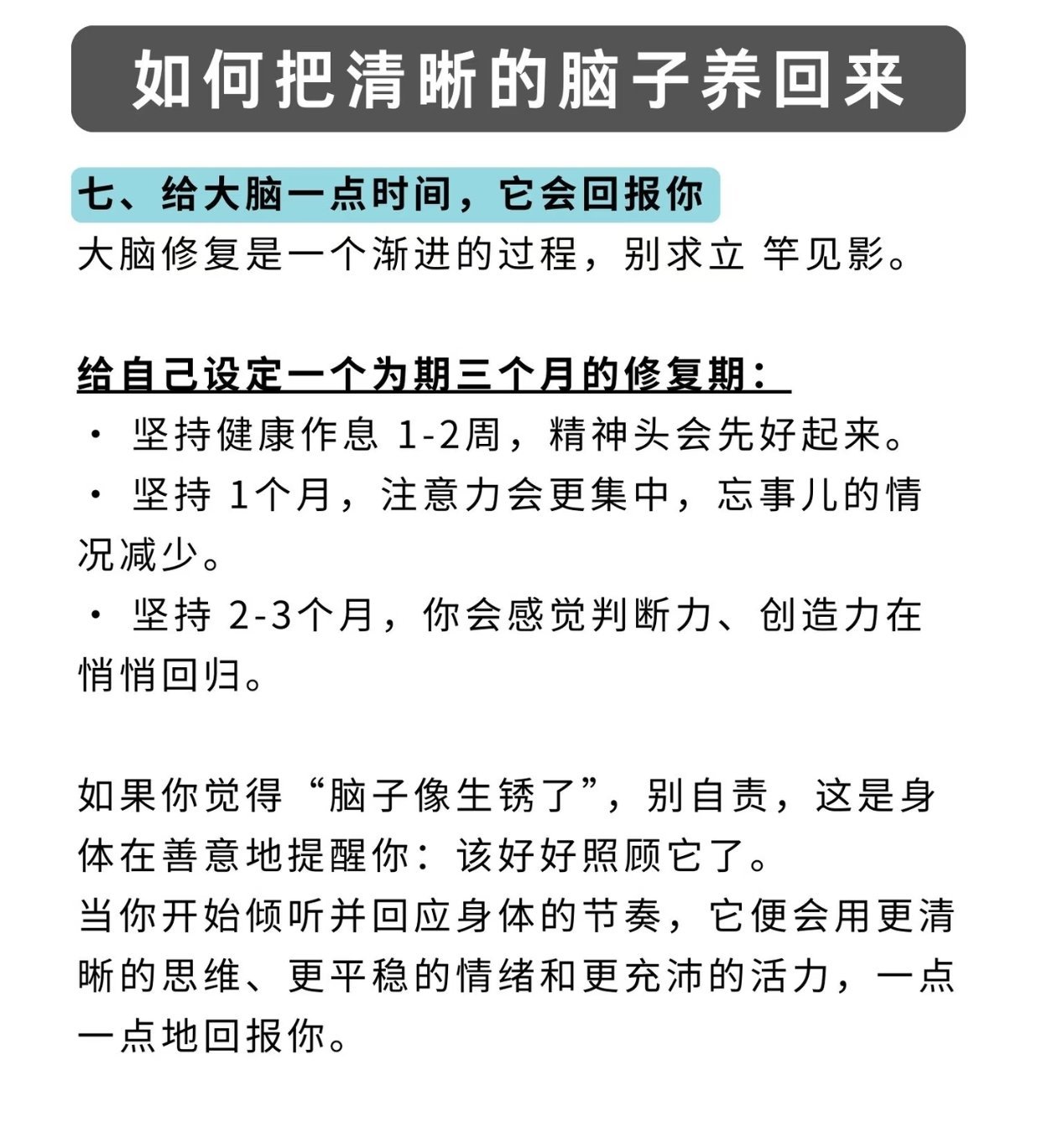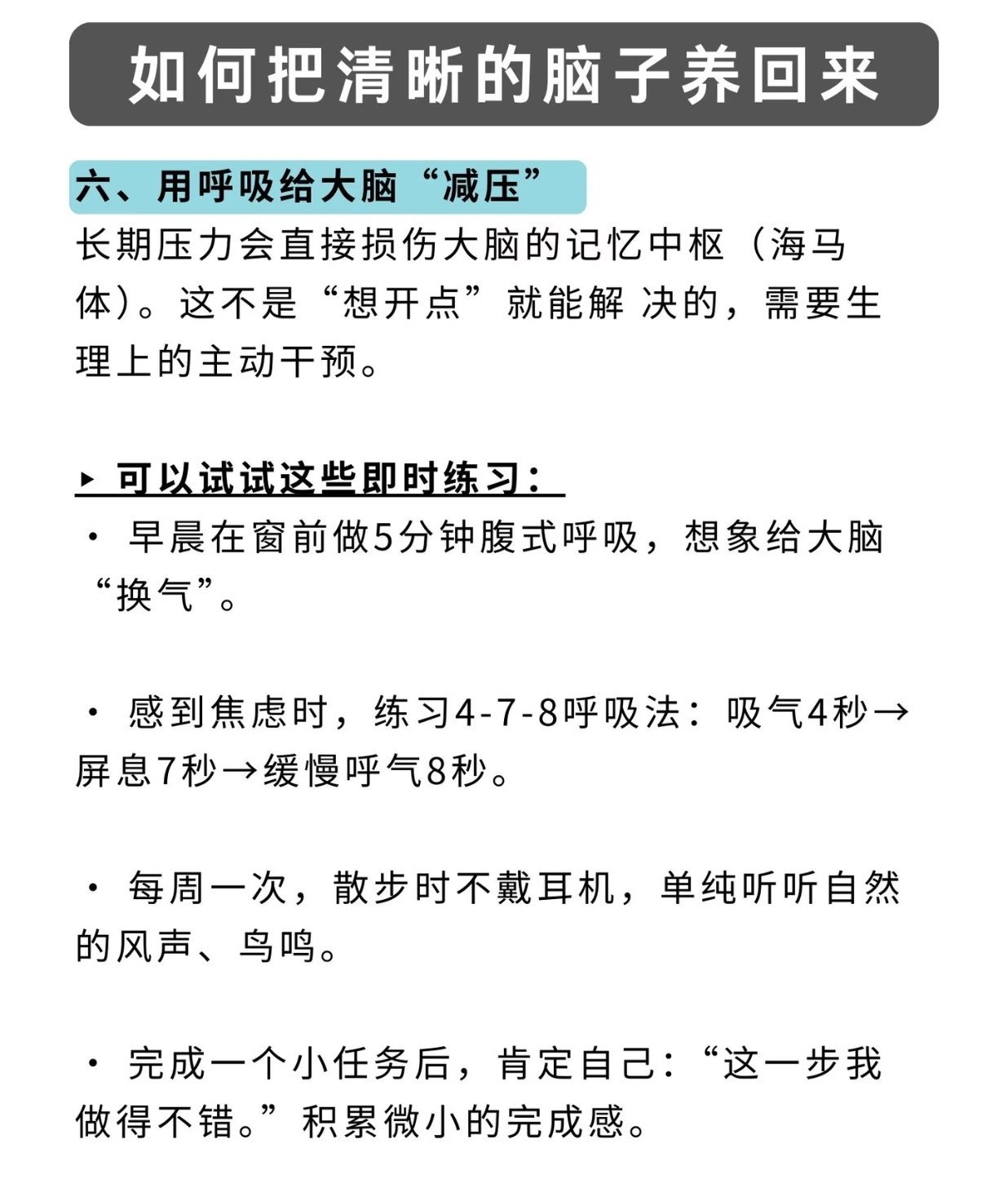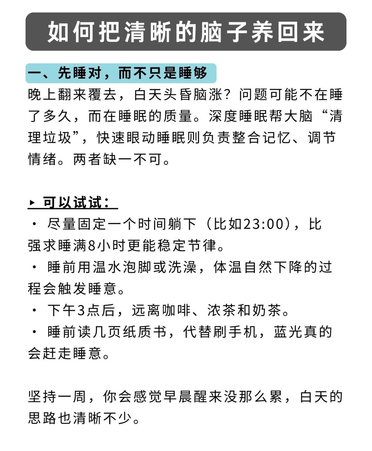 你是否也感覺,有時候腦子像蒙了一層霧,想不深、記不住、轉不動?這不是你變"笨"了,很可能是大腦長期過載,發出了需要養護的信號,彆着急,清晰的思維是可以慢慢養回來的。