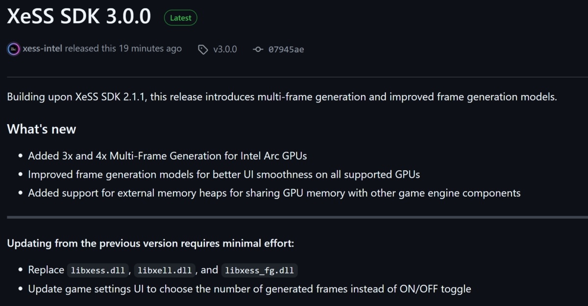 英特尔已在 GitHub 上更新了其 XeSS 软件开发工具包。新版本增加了 XeSS 3.0 支持,包括多帧生成和更新的帧生成模型。