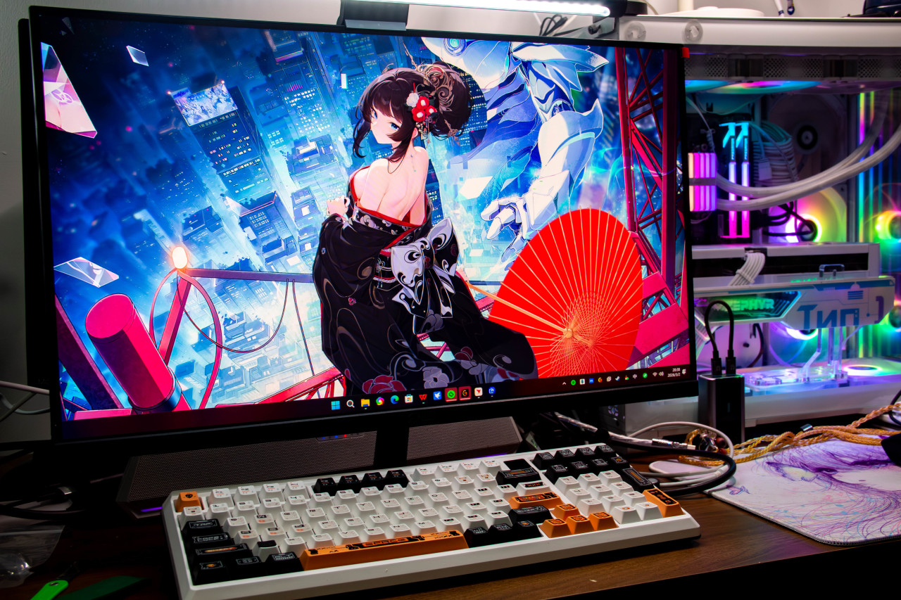 面板为Fast IPS+QLED红光量子点技术,100%sRGB色域覆盖,亮度在400尼特以上,接口为DP1.4和HDMI2.0。