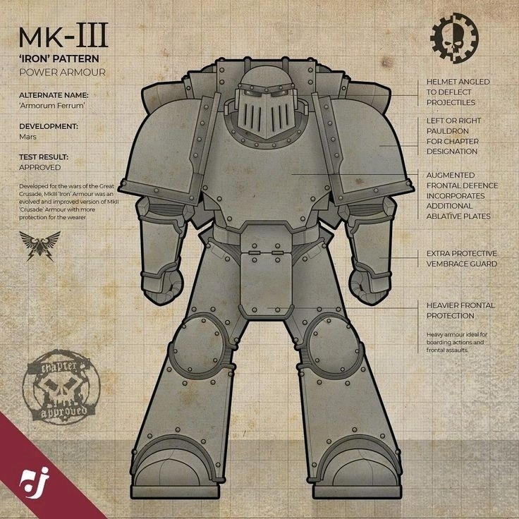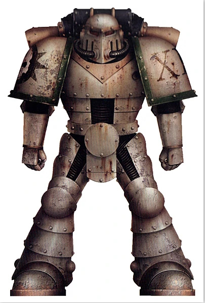 荷鲁斯之乱全面爆发后诞生的应急拼凑型动力甲,因内战导致供应链断裂、铸造世界沦陷,前线的星际战士无法获得完整的装甲补给,只能用各型号的破损零件拼凑修复,最终形成了这一通用型号。