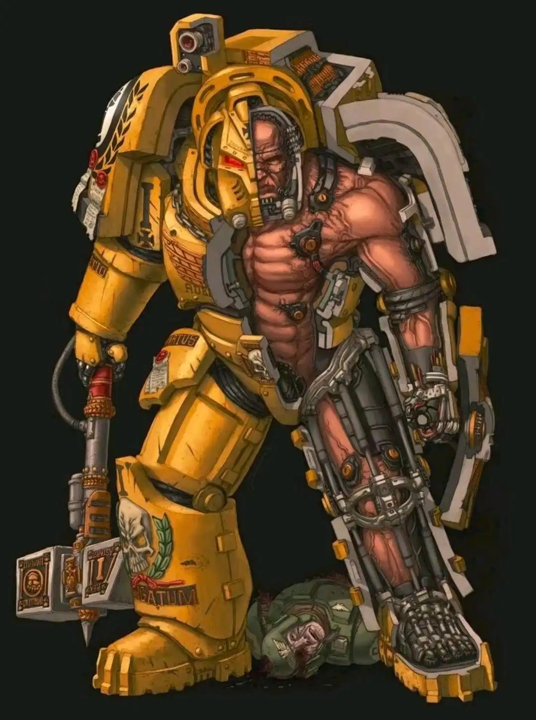 动力甲与阿斯塔特的黑色甲壳(Black Carapace) 深度绑定——这是星际战士最后一道改造手术植入的皮下神经膜,内置数千个神经接口。通过神经接口与装甲伺服系统直连,实现意念级操控。