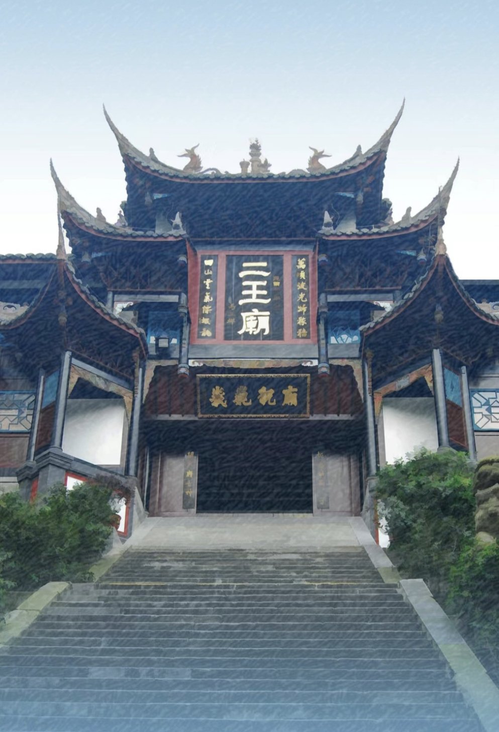 李冰父子主持修建了都江堰水利工程,这个工程两千多年了还在用,成都平原能成为天府之国,他们功不可没。后人为了纪念这爷俩,给他们修了座庙,叫二王庙。李二郎作为治水功臣,自然也被塑了像供奉起来。