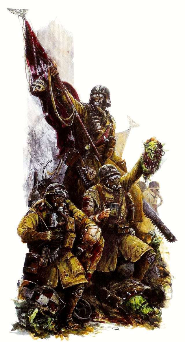 在帝國內屈指可數的幾個著名的機械化步兵團中,最負盛名的便是那些組建於巢都世界阿米吉多頓球的兵團。當其他帝國衛軍部隊還在依賴戰馬或其他常規坐騎進行機動時,阿米吉多頓鋼鐵軍團卻已經乘坐着他們信賴的奇美拉裝甲運輸車,作爲機械化步兵投入每一場戰鬥。