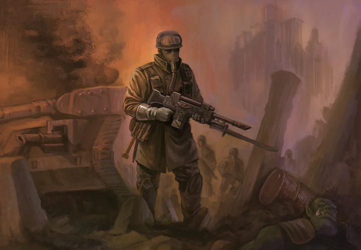 在帝國廣袤無垠的星域中,有一支軍團的名字與鋼鐵、火焰和無盡的戰爭緊密相連。他們來自一個被工業毒素浸透、被戰火反覆灼燒的巢都世界,他們在灰燼與廢土中崛起,在幫派廝殺的底層中廝殺而出。當歐克獸人的綠色潮汐無數次席捲他們的家園,當混沌的陰影企圖吞噬他們的恆星,這些身穿防化風衣、面戴呼吸面具的戰士們始終屹立不倒。他們,就是阿米吉多頓鋼鐵軍團,星界軍中最爲著名的機械化步兵,一支爲在致命環境中作戰而生的精銳力量。