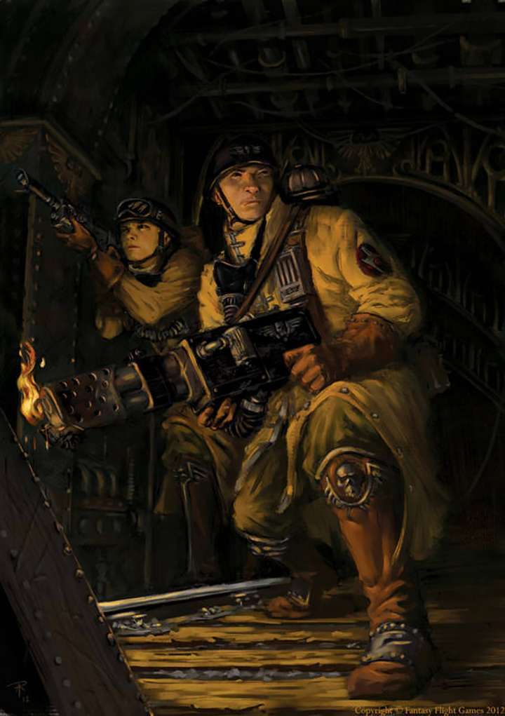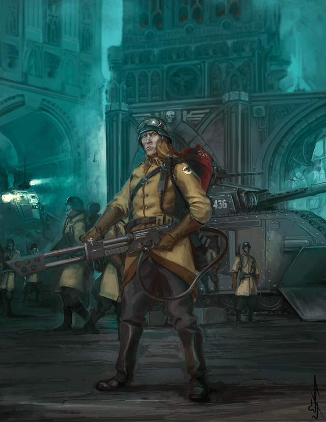 在這樣的背景下,大規模機械化步兵編隊在帝國衛軍的序列中實屬罕見。造成這種稀少情況的原因是,裝備和維護大量裝甲車輛所需的資源極難獲取,即便是尊貴如帝國部隊指揮官或行星總督這樣的人物也難以做到。