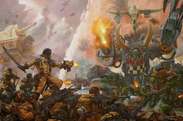 在如火如荼的第三次阿米吉多頓之戰中,本土兵團幾乎被部署到了對抗綠皮獸人部落的每一場重大戰役之中。其中最爲慘烈的當屬阿喀戎巢都的圍城戰,帝國軍隊、歐克獸人以及惡魔勢力,爲了爭奪阿米吉多頓這座主要巢都城市的控制權,陷入了一場充滿流血與毀滅的血腥漩渦。三方數百萬大軍雲集於這顆星球首都周圍的灰燼廢土之上,而裝甲縱隊以及高聳入雲的泰坦將爲其提供支援。