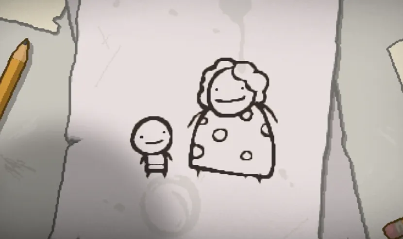 不过我想你注意到了,《以撒》所有的过场动画和结局,都是画在揉皱的草稿纸上的粗糙简笔画。这是E胖对他外婆最深的追思《以撒的结合》这款游戏本身,就是当年外祖母视若珍宝般替他收存的那一整箱恶魔简笔画。他把自己的童年连同外祖母的温柔,永远地封存进了这个赛博纸箱里。
