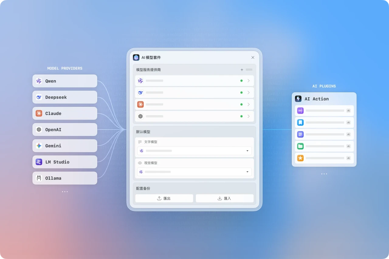 簡單來說:你只需要配置一次 AI 模型,以後所有基於它開發的 AI 插件都能直接使用,不需要重複設置。