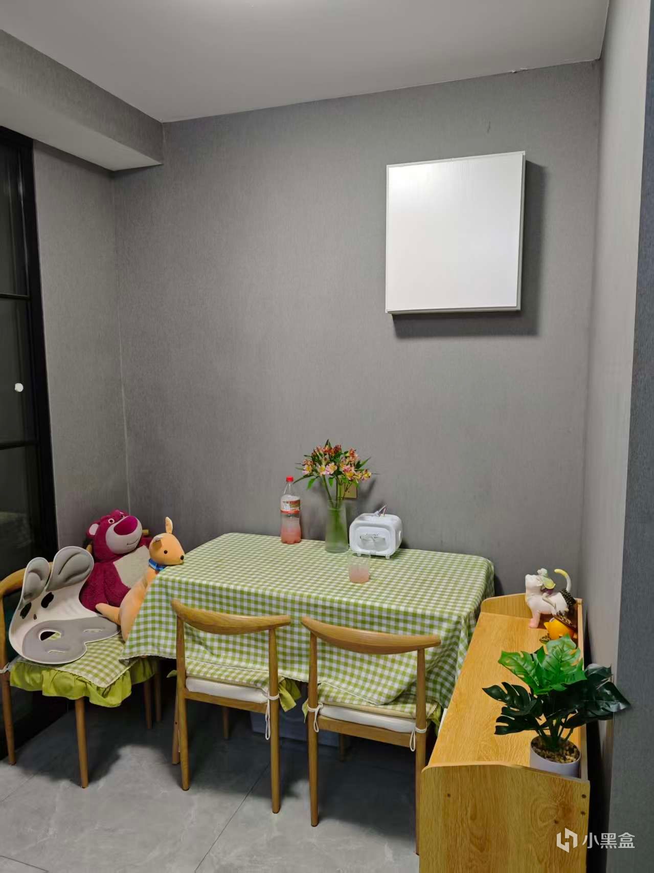 其實這次我是想換1米5的電競桌,但是奈何這個有大廚房和餐桌了,就沒有更大的地方弄電競區了,多方綜合考慮,還是用了之前的桌子,另外購置了一個洞洞牆架子搭配使用。