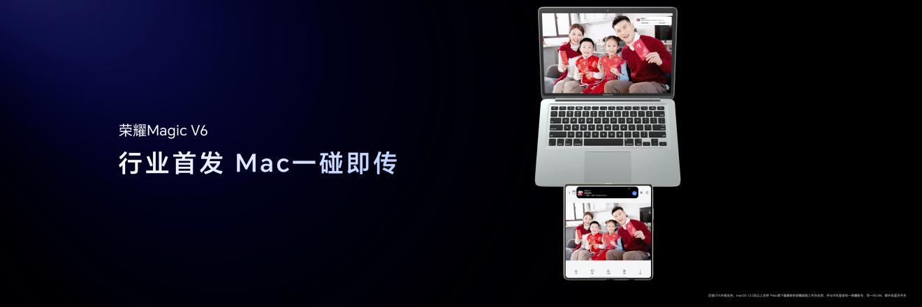 荣耀Magic V6还号称是Mac的折叠屏好搭子,通过行业首发的Mac一碰即传,支持苹果办公三件套的编辑,展开秒变Mac扩展屏,还能一键登录iCloud查看相册。此外,还支持AirPods原生级体验、Apple Watch信息共享,此外荣耀MagicV6支持一键共享热点给iPhone,无缝衔接苹果全家桶,跨生态连接不卡顿。