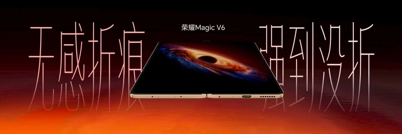 荣耀Magic V6采用新一代超韧UTG玻璃,折痕相比上一代产品改善44%,并通过了SGS无感知折痕认证,平到极致似没折。同时具备三层防护,内屏抗冲击力提升33%。
