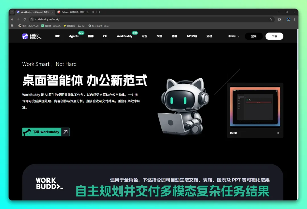 目前「WorkBuddy」全量正式上線,無內測、無邀請制,普通用戶也能輕鬆養"小龍蝦"。