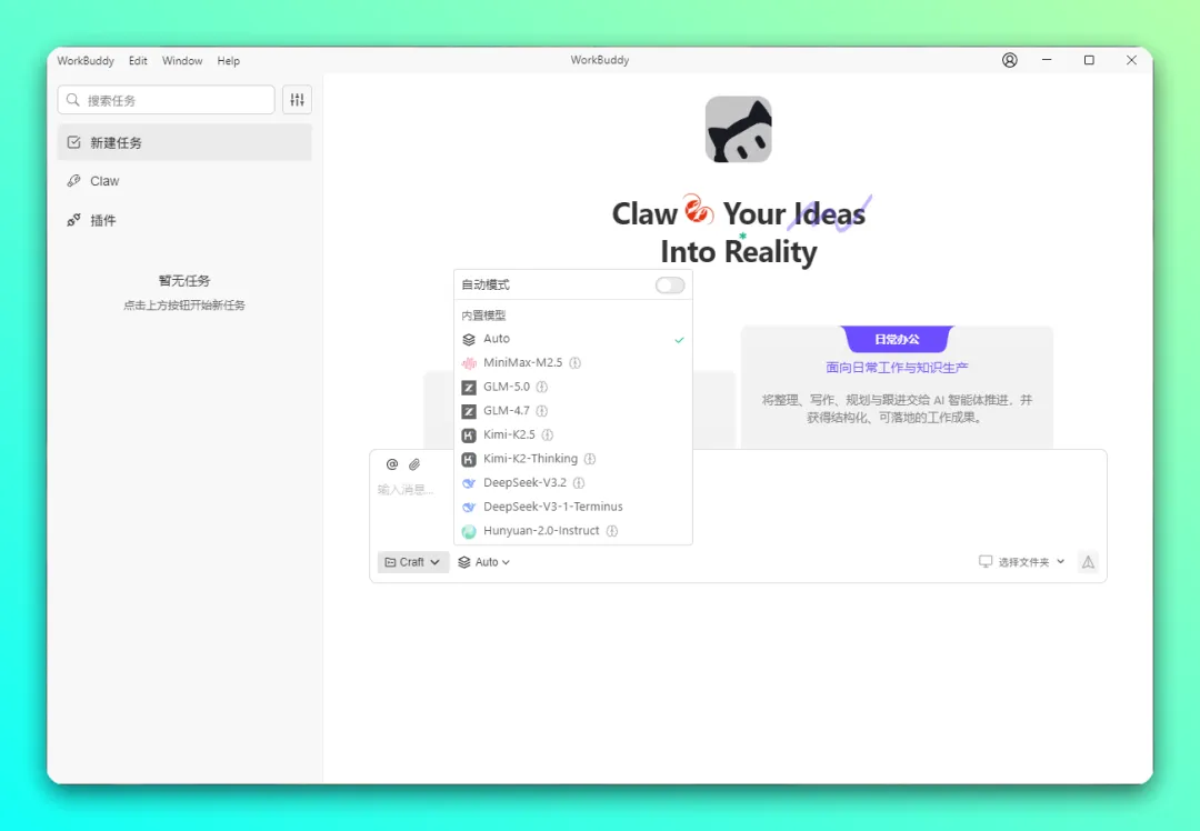 砍掉了複雜部署門檻,不用懂代碼、不用配環境,下載安裝就能用,提供了 macOS 和 Windows 客戶都,主打“一句話辦公”,能聽懂需求、自主思考、動手完成任務。