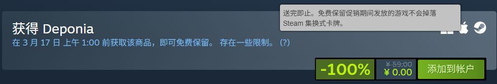 原价59元的《德波尼亚》,于北京时间03.17,1:00截止免费领取!