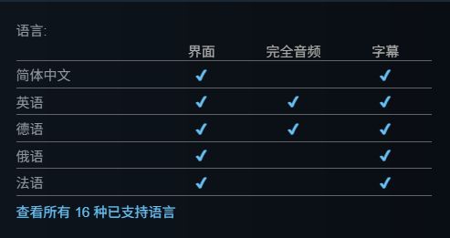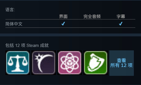 游戏只支持简体中文但没有中文完全音频,包括12项Steam成就